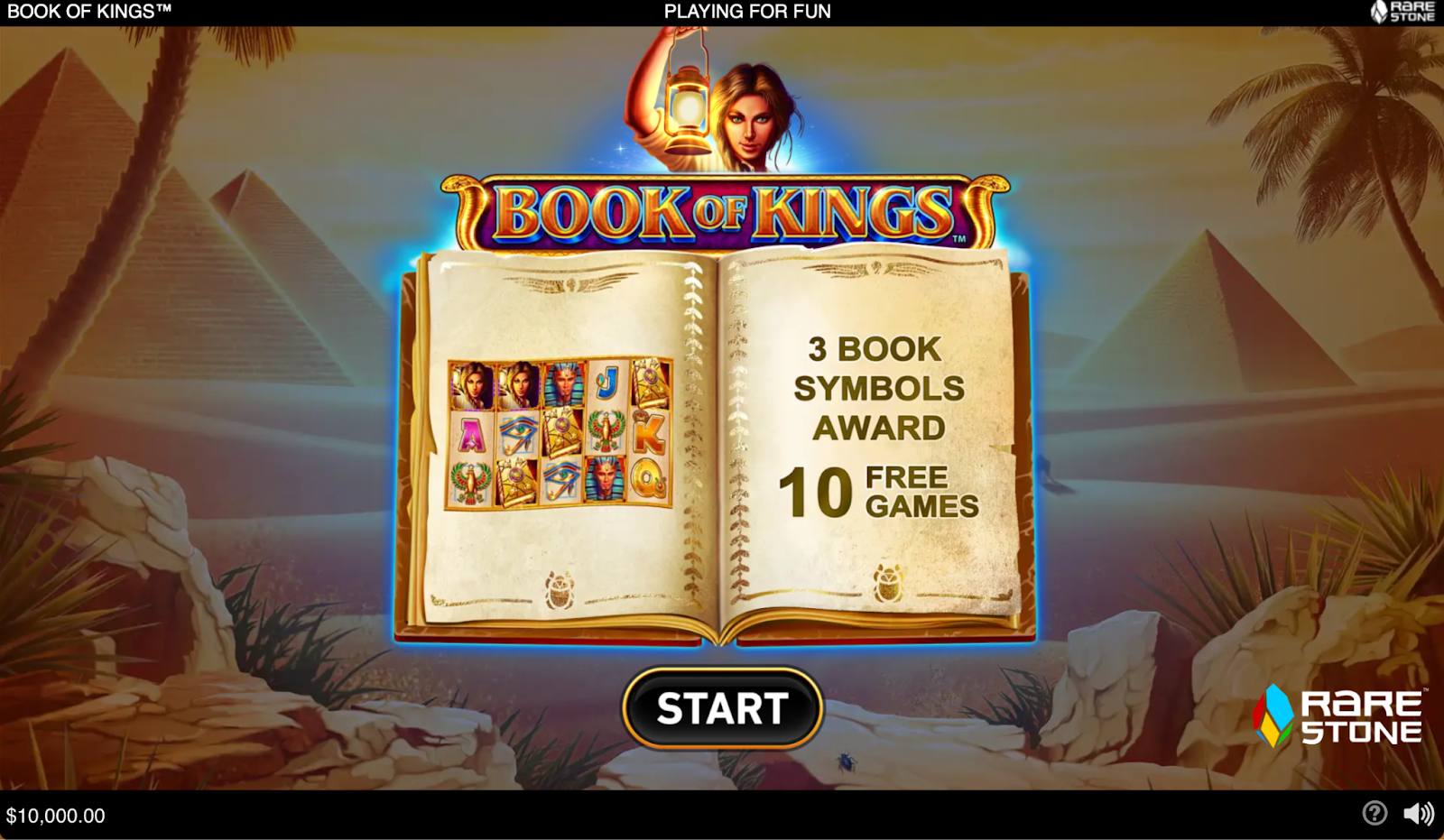 Book of Kings is set on a standard 5-reel, 3-row grid with 10 fixed paylines. The gameplay mechanics are simple and accessible to all types of players — winning combinations are formed from left to right, and the biggest payouts come from expanding symbols during the bonus round.